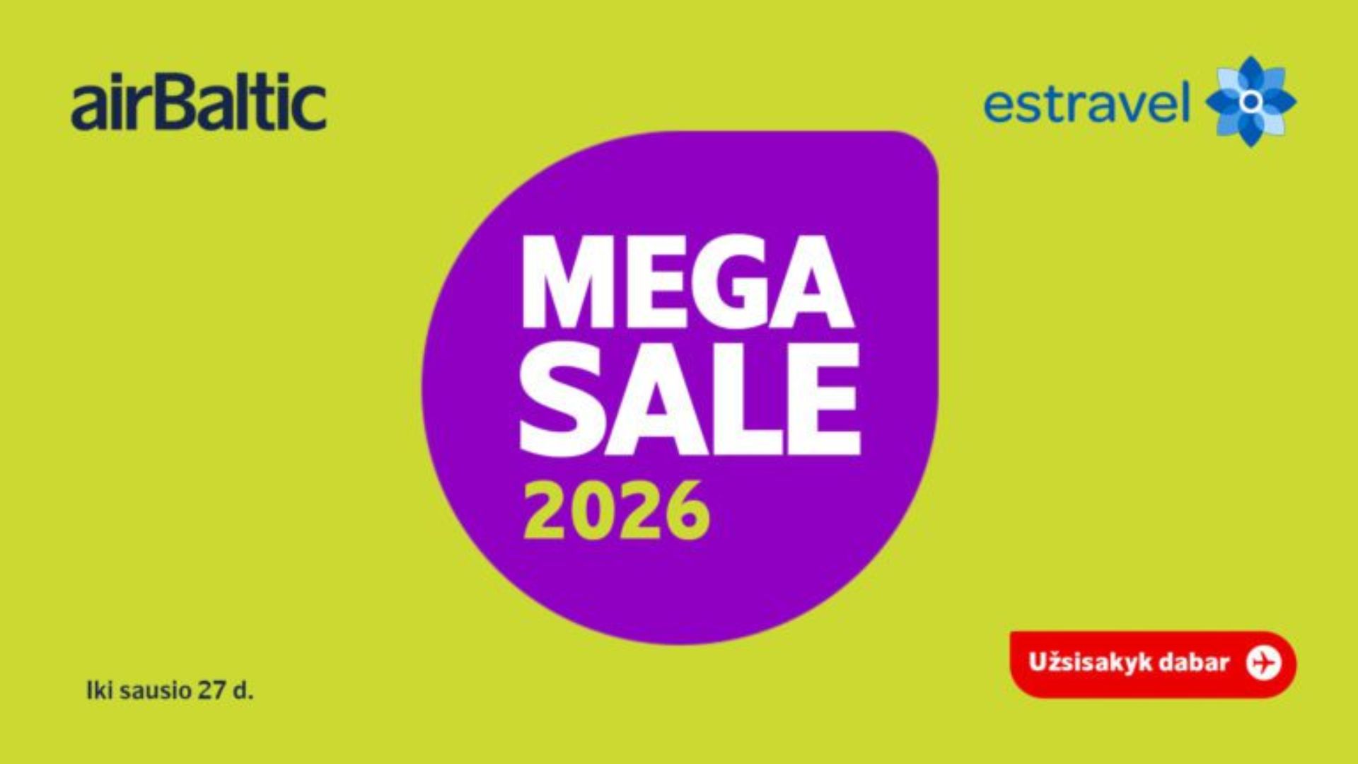 Dalinamės puikiomis žiniomis: mūsų partneriai, aviakompanija airBaltic, skelbia MEGA išpardavimą! Pavasario savaitgaliai, vasaros atostogos ar saulėtos rudens išvykos – užsisakyk bilietus dabar, kad 2026 metai taptų nepamirštami!