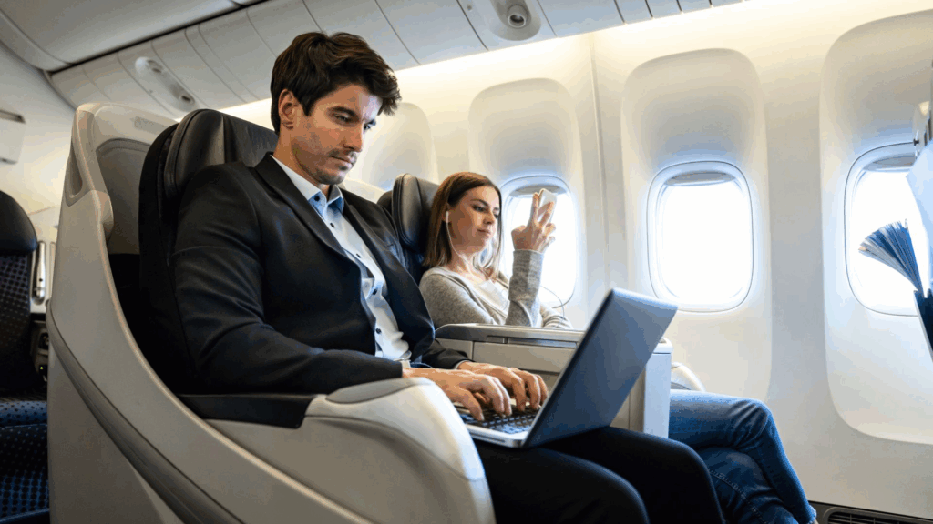 - Reguliuojamas aplinkos ir skaitymo lemputes, universalius ir C tipo maitinimo lizdus, belaidį įkroviklį, triukšmą slopinantis garso lizdas, reguliuojamas veidrodis, ergonomiškas sėdynės pagalvėlė bei 22 colių IFE ekranas.