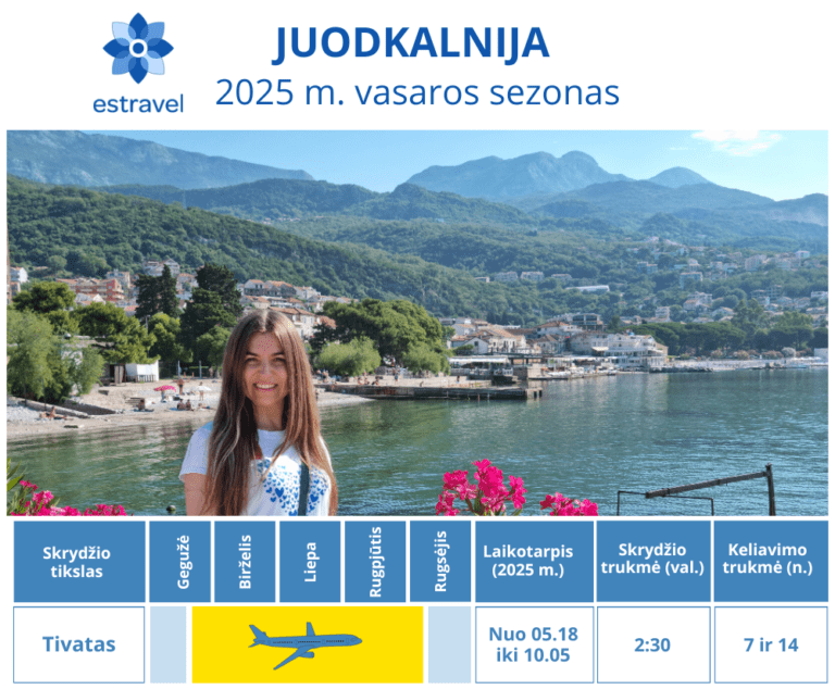 “Juodkalnija – nuostabi šalis, norintiems derinti poilsį ir pažinimą. Tiesioginiai skrydžiai trumpi, Adrijos jūra labai švari ir šilta, oras pukus, o gamta – įspūdinga. Juodkalnijoje labai didelė viešbučių įvairovė, tad kiekvienas tikrai išsirinks sau tinkamą. Kainos – labai patrauklios tiek pačių kelionių iš Lietuvos, tiek ekskursijų Juodkalnijos viduje.”