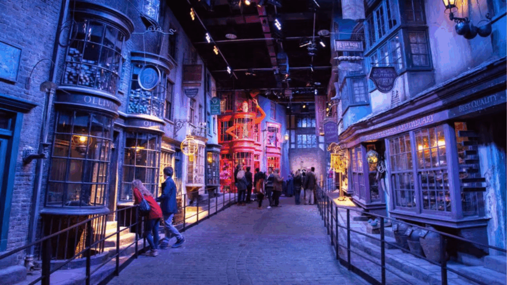 Hario Poterio fanams išskirtinio dėmesio verta vieta Londone yra ir „Warner Bros” studija. Čia organizuojamos ekskursijos, kurių metu pristatomi filmavimo aikštelių fragmentai, herojų kostiumai, filmuose nematomi įrengimai ir mechanizmai. Čia lankytojai gali išvysti Didžiąją Hogvarsto mokyklos salę, mokyklos direktoriaus Dumbuldoro kabinetą, Hario Poterio Nimbus 2000 skraidančią šluotą, Gringotso banką, mandragorų auginimo šiltnamį ir kitus eksponatus iš filmų. Taip pat, studijos lankytojai kviečiami įgyvendinti savo svajonę „paskraidyti“ ant šluotos, išmokti laikyti burtų lazdelę ir išbandyti kitas unikalias patirtis. Visi čia apsilankantys burtininkai ir raganos galės taip pat įsigyti Hario Poterio atributikos.
