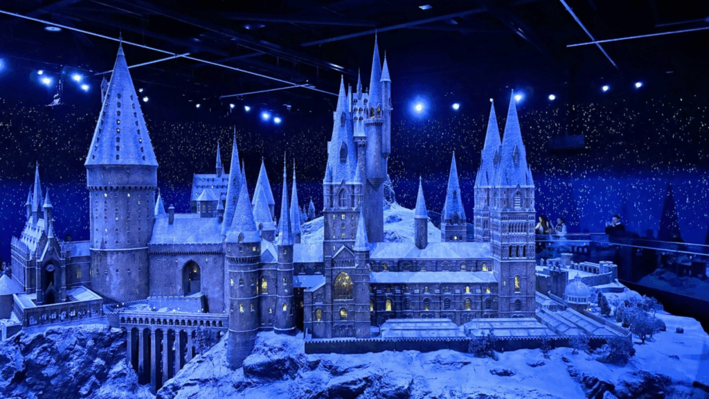 - 9¾ peronas (Kings Kroso geležinkelio stotis) – garsioji scena, kuomet mokiniai lipa į traukinį, pakeliui į Hogvartso mokyklą. Šioje stotyje taip pat galima įsiamžinti prie sienos, imituojančios stebuklingą portalą, tarsi patys bandytumėte prabėgti su lagaminais prikrautu vežimu.