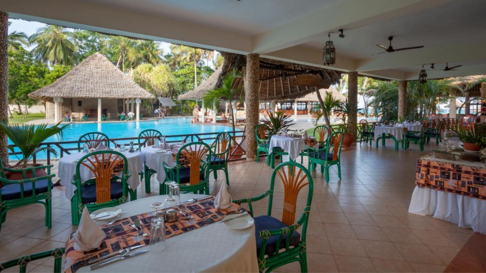 Viešbutyje yra 4 restoranai. Pagrindiniame Peponi restorane mėgausitės „viskas įskaičiuota“ maitinimo paslaugomis ir tarptautinės virtuvės patiekalais. Olive Kitchen restorane gėrimais ir gardžiu maistu mėgausitės visai šalia baseino ir vaizdo į palmes. Deck – specializuotas kavos ir arbatos bei užkandžių restoranas, norintiems pasimėgauti ramia popiete su vaizdu į Indijos vandenyną. Jungle restoranas – greito maisto gerbėjams, nes tiekia puikius sumuštinius ir kitus užkandžius.
