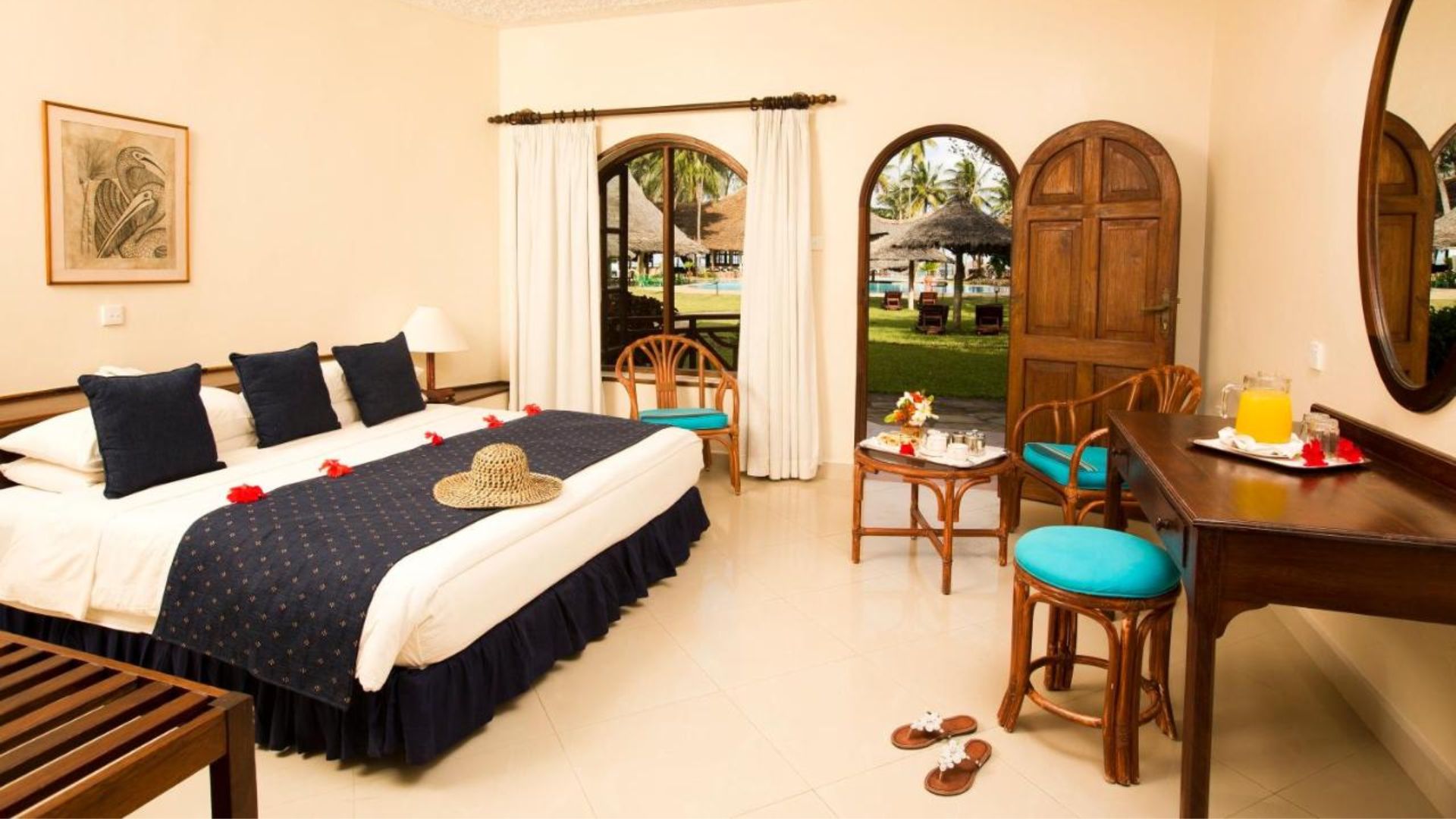 Tropinių sodų apsuptyje, prie garsiausio ir gražiausio Kenijos paplūdimio Diani, išsidėstęs puikus 4* viešbutis Neptune Paradise Beach Resort & SPA. Viešbutyje yra 92 kambariai, kurie yra tradicinio afrikietiško stiliaus nameliuose (bungaluose). Viename tokiame bungale yra tik 4 kambariai, todėl čia poilsiaudami galite tikėtis ramybės ir kokybiško poilsio atokiau nuo visų viešbučio svečių.