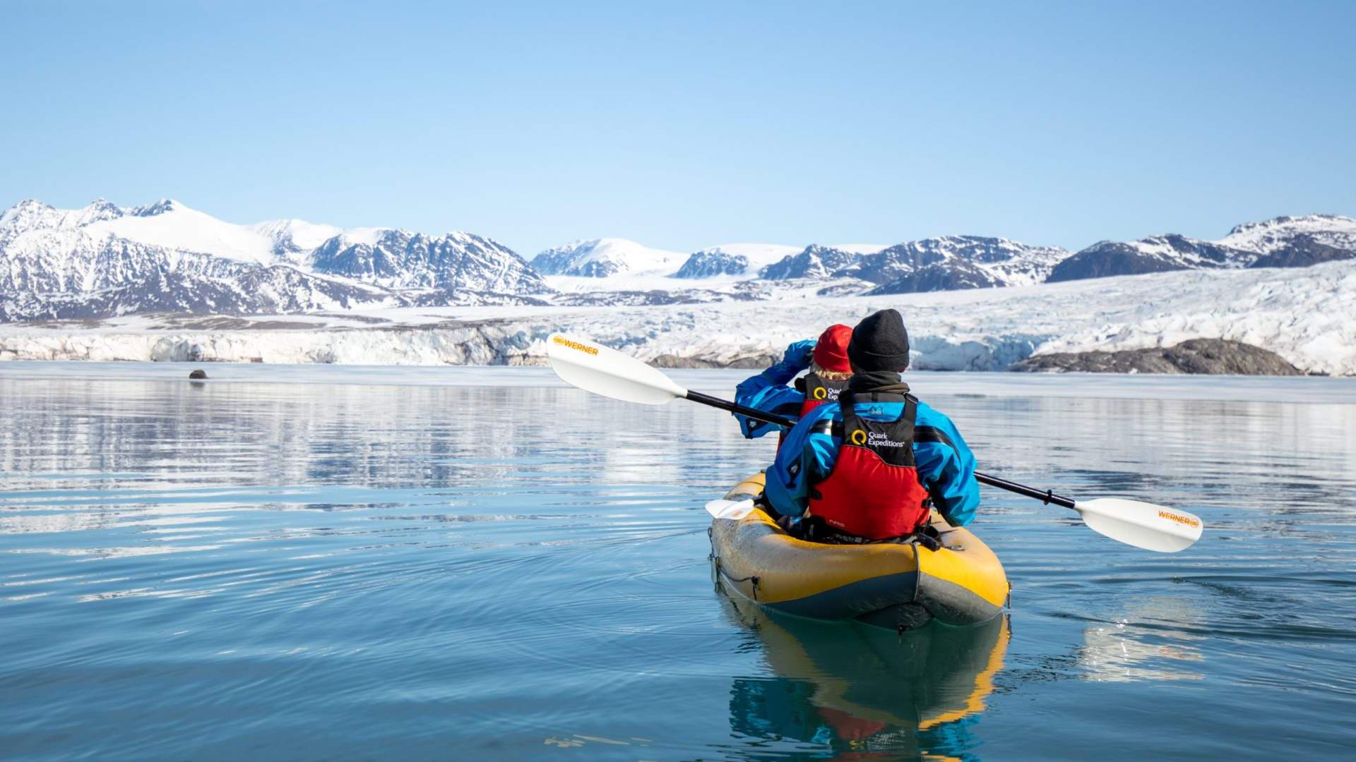 - Plaukimas baidarėmis jūroje (~1,5-3 val.) – įsivaizduokite kaip irkluojate, o aplink Jus Arkties ledkalnių ir ledynų peizažai tiesiog atima žadą. Plaukimai vyksta kelis kartus visos kelionės metu, esant palankioms oro ir vandens sąlygoms. Sudaromos nedidelės grupės, o kartu vyksta patyręs gidas. Norint dalyvauti, reikalinga ankstesnė patirtis plaukiant baidarėmis bei žinios kaip prireikus išlipti iš vandens.