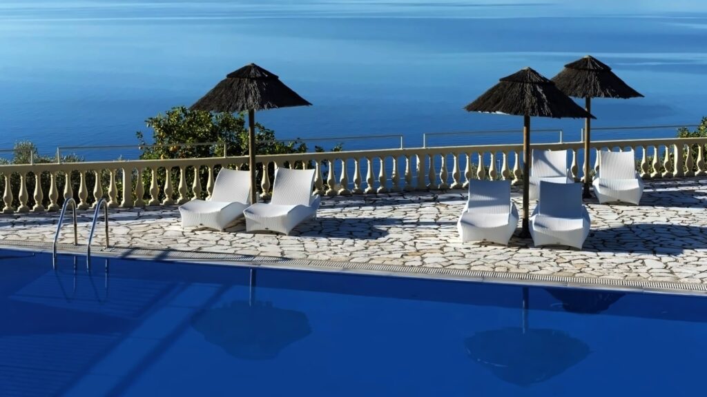 - Skėčiai nuo saulės prie baseino