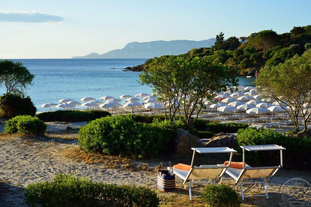 Sardinijos šiaurės rytų pakrantėje, apie 10 km iki Golfo Aranci uosto, apie 18 km iki Olbijos oro uosto, apie 400 m iki paplūdimio.