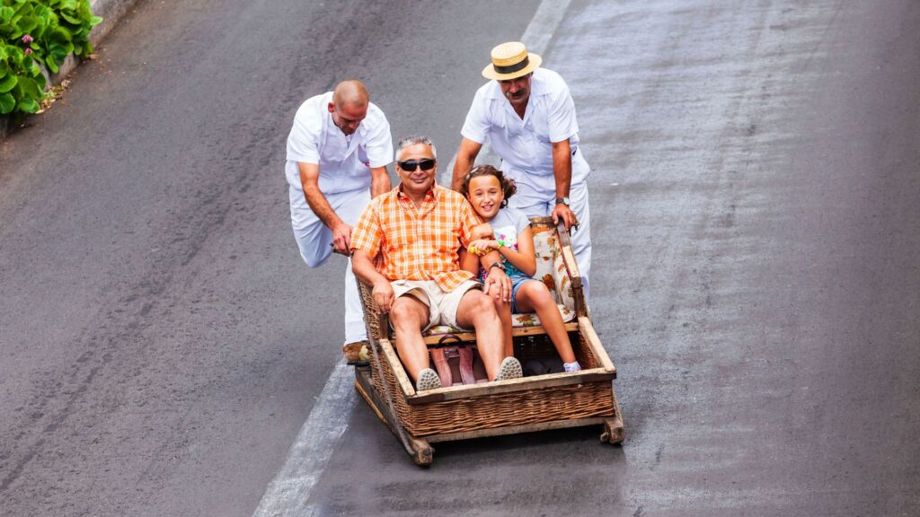 Autentiška Madeiros patirtis, kurios nerasite niekur kitur. Jeigu mėgstate ekstremalius pojūčius – sėskite su vaikais į rogutes ir stumiami tradiciniais madeirietiškais apdarais pasidabinusių rogučių vairuotojų dideliu greičiu leiskitės nuo kalno tiesiog gatvėje!